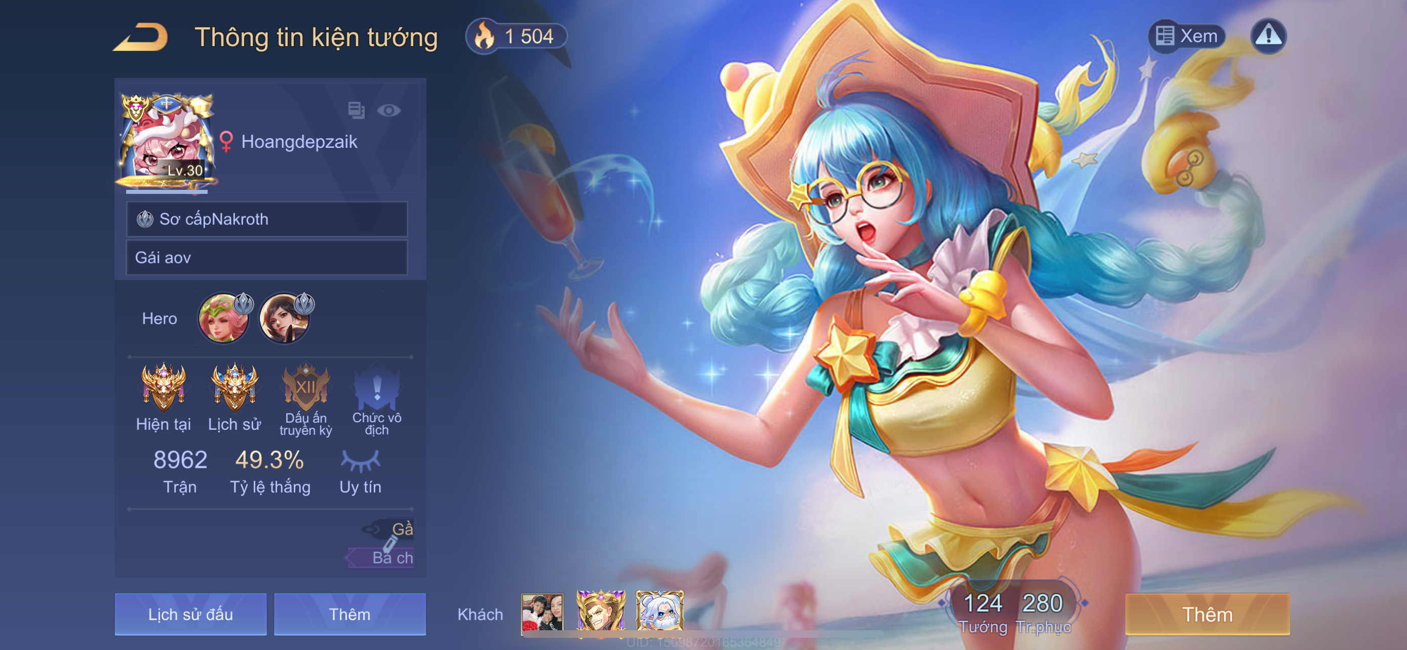 Yorn Thế Tử Nguyệt Tộc, Gildur Tiệc Bãi Biển, Murad Siêu việt, Lữ Bố Tiệc Bãi Biển, Lữ Bố Tư lệnh Robot, Ilumia Nộ hải Thiên ngư, Butterfly Nữ Quái Nổi Loạn, Lauriel Tinh vân sứ, Raz Chiến thần Muay Thái, Omen Đao phủ tận thế, Điêu Thuyền Tiệc bãi biển, Liliana Nguyệt mị ly, Capheny Kimono] SSS : 1