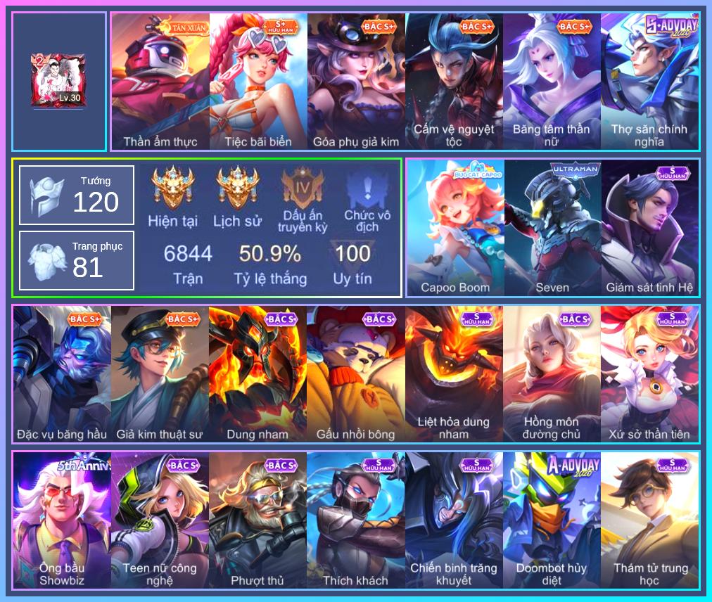 Valhein Hoàng tử Quạ, Valhein S-Quang Vinh, Taara Đại tù trưởng, Taara Hồng môn đường chủ, Krixi Xứ Sở Thần Tiên, Krixi Phó văn nghệ, Veera Goá Phụ, Raz Đại tù trưởng, Gildur phượt thủ, Gildur Đại gia học viện, Lindis Thám Tử Tư, Lindis Quang Vinh, Lindis Đồng phục Shihakusho, Natalya Băng tâm thần nữ, Ignis Quang Vinh, Ignis Vì sao con khóc, Grakk Thần ẩm thực, Stuart Trò đùa tử vong, Stuart Gã hề, Enzo Phẩm chất quý tộc, Enzo Leo núi, Arduin Quang Vinh, Alice Xứ sở thần tiên, Alice Dạ hội, Alice The Butterfly Mansion Girl, Ngộ Không Đạo tặc, Ngộ Không Đặc vụ băng hầu, Krizzix Cún siêu quậy, Krizzix Crursed Corpse, Ybneth Candy Bear, Dirak Quý tộc, Dirak Ông bầu Showbiz, Max Quang Vinh, Rouie Quang Vinh, Hayate Bạch ảnh, Amily Đặc cảnh NYPD, Amily Hội ám hoàng, Yena Nữ hoàng thể thao, Laville Tay súng vô địch, Fennik Tay đua F1, Teemee Tay đua siêu tốc, Teemee Thịt xiên nướng, Preyta Phi cơ F1, Butterfly Teen Nữ Công Nghệ, Zill Dung nham, Zill Thần mộng mị, Mganga Doombot Hủy Diệt, Florentino Giám sát tinh hệ, Florentino SEVEN, Florentino S-Quang Vinh, Ilumia Ngược dòng thời gian, Violet Phó học tập, Violet Huy Chương Vàng, Zuka Giáo Sư Sừng Sỏ, Zuka Gấu Nhồi Bông, Zuka Đầu bếp hoàng cung, Zata Tư lệnh viễn chinh, Telannas Dạ hội, Airi Thích Khách, Airi Cấm Vệ Nguyệt Tộc, Airi Tiệc bãi biển, Airi Lễ hội mùa xuân, Baldum Liệt hỏa dung nham, Veres Đạo tặc, Kaine Thợ Săn Chính Nghĩa, Arthur Siêu sao Cricket, Qi Thiếu nữ pháo hoa, Thorne Giả kim thuật sư, Thorne Thám tử trung học, Thane Kẻ Hủy Diệt, Celica S-Quang Vinh, Roxie Hầu gái, Omen Chiến binh trăng khuyết, Annette Xứ sở thần tiên, Tachi Đao khách vô tình, Slimz Siêu Cấp Tối Thượng, KilGroth Cảnh Vệ Biển, Bonnie S Quang Vinh, Iggy Bạch hồ ly, Caesar Bão tố, Ishar Capoo Boom, Kriknak Bọ Cánh Bạc