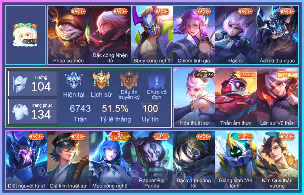 Valhein Hoàng tử Quạ, Valhein Quang Vinh, Valhein Số 7 Thần Sầu, Valhein Khiêu chiến, Valhein S-Quang Vinh, Triệu Vân Quang Vinh, Gildur phượt thủ, Kahlii Siêu đầu bếp, Arthur Hoàng kim cốt, Arthur Lãnh chúa xương, Arthur Siêu sao Cricket, Arthur Đặc cảnh băng lôi, Mganga Tiệc Bánh Kẹo, Mganga Pháp sư mèo, Mganga Doombot Hủy Diệt, Thane Quang vinh, Điêu Thuyền Nữ Vương Anh Đào, Điêu Thuyền Mèo công nghệ, Butterfly Teen Nữ Công Nghệ, Skud Quang Vinh, AzzenKa Linh Hồn Lữ Khách, Azzenka Quang Vinh 2.0, AzzenKa Giáng sinh An lành, Toro Đặc cảnh NYPD, Toro Bạch mao Ngưu, Yorn Cung thủ bóng đêm, Lauriel Đọa Lạc Thiên Sứ, Zuka Gấu Nhồi Bông, Zuka Đầu bếp hoàng cung, Zuka Rapper Big Panda, Kaine Người dơi, Raz Đại tù trưởng, Zephys Oán linh, Zephys Phi thương, Maloch Ác Ma Địa Ngục, Slimz Thỏ Thợ Mỏ, Slimz Chú thỏ ngọc, Slimz Sứ giả Thiên giới, Omega Hộ Vệ Carano, Ngộ Không Đạo tặc, Zill Dung nham, Zill Diệt nguyệt tử sĩ, Violet Nữ đặc cảnh, Violet Đặc Dị, Violet Tay Súng Siêu Phẩm, Moren Anh thợ điện, Moren Lính cứu hỏa, Aleister Quang Vinh, Aleister Quỷ soái nguyệt tộc, Nakroth Quân đoàn địa ngục, Nakroth BBoy công nghệ, Nakroth Producer Tia chớp, Grakk Thuyền Trưởng Râu Đỏ, Grakk Khô Lâu Đại Tướng, Grakk Thần ẩm thực, Chaugnar Quang Vinh, Murad Thợ Săn Tiền Thưởng, Murad S-Quang Vinh, Preyta Không Tặc, Preyta Phi cơ F1, Telannas Thánh nữ mật hội, Telannas Dạ hội, TelAnnas Quang Vinh, KilGroth Cảnh Vệ Biển, KilGroth Quang Vinh, Alice Xứ sở thần tiên, Alice Dạ hội, Lữ Bố Nam Vương, Lữ Bố Hoả Long Chiến Thần, Airi Thích Khách, Airi Lễ hội mùa xuân, Lindis Quang Vinh, Arduin, Arduin Quang Vinh, Arduin Tà linh hiệp sỹ, Elsu Mafia, Lumburr, Ignis Quang Vinh, Ignis Bắc băng vương, Roxie Hầu gái, Roxie Lễ hội hoa, Roxie Hỏa thuật sư, Omen Thuyền trưởng hải tặc, Fennik Tay đua F1, Hayate Bạch ảnh, Hayate Bạch lang, Sephera Chiêm tinh gia, Sephera Phi vụ thế kỷ, Amily Đặc cảnh NYPD, Amily Đặc công nhện đỏ, Amily Hội ám hoàng, Kriknak Bọ Cánh Bạc, Kriknak Yêu trùng cổ mộ, Max Quang Vinh, Volkath Tư lệnh viễn chinh, Volkath Quang vinh, Keera Y tá lạ, Ryoma Thợ Săn Tiền Thưởng, Ryoma Đại Tướng Nguyệt Tộc, Florentino Vũ kiếm sư, Florentino Thần thoại Hy Lạp, Florentino S-Quang Vinh, Enzo Phẩm chất quý tộc, Enzo Thần thoại Hy Lạp, Capheny S-Quang Vinh, Teemee Tay đua siêu tốc, Richter Quang vinh 2.0, Celica S-Quang Vinh, Yena Hoạt náo viên, Rouie Quang Vinh, Wisp Hải Tặc Nhí, Wisp Ếch nhồi bông, Laville Tay đua đường phố, Laville Tay súng vô địch, Laville Kim quy thần vương, Annette Xứ sở thần tiên, Dirak Quý tộc, Dirak Đường chủ yêu giới, Thorne Giả kim thuật sư, Ata Quang vinh, Dextra Lữ khách cao nguyên, Allain Lân sư Vũ thần, Baldum, Baldum Đồ chơi, Zata Tư lệnh viễn chinh, Qi Thiếu nữ pháo hoa, Qi Blogger Ẩm thực, Tachi Đao khách vô tình, Bonnie S Quang Vinh, Xeniel Thiên Sứ Hủy Diệt, Sinestrea S-Quang vinh, Biron Võ sĩ Giác đấu, Marja Linh Xà Tư Tế, Dolia Môn đồ tập sự