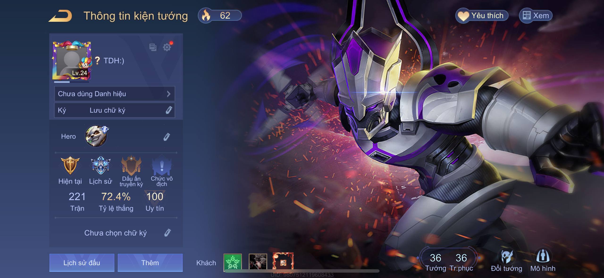 TelAnnas Giám thị thân thiện, Telannas Dạ hội, TelAnnas Quang Vinh, Valhein Hoàng tử Quạ, Valhein Xạ Thần, Arthur Siêu sao Cricket, Arthur Đặc cảnh băng lôi, Butterfly Teen Nữ Công Nghệ, Butterfly Quận Chúa Đế Chế, Butterfly Gánh anh đến cùng, Butterfly Bình Minh Tận Thế, Violet Phi Công Trẻ, Violet Đặc Dị, Violet Huy Chương Vàng, Violet Thần long tỷ tỷ, Krixi Phó văn nghệ, Krixi Thuỷ Thủ, Triệu Vân Quý Công Tử, Allain Lân sư Vũ thần, Maloch Ác Ma Địa Ngục, Maloch Ác nhân vô tuyến, Veera Bách hoa tiên nữ, Stuart Vua hề, Stuart Gã hề, Stuart Dạ Xoa thiếu chủ, Zephys Phi thương, Zephys Inosuke Hashibira, Grakk Thần ẩm thực, Qi Quán quân, Qi Thiếu nữ pháo hoa, Alice Bé Gấu Tuyết, Alice Xứ sở thần tiên, Alice The Butterfly Mansion Girl, Omen Sĩ Quan Viễn Chinh, Ngộ Không Đạo tặc, Ngộ Không Thần Giáp Xích Diễm, Yorn Đặc Nhiệm Swat, Yorn Soái ca bãi biển, Kriknak Bọ Cánh Bạc, Dextra Quý cô Tuổi Dần, Dextra Lữ khách cao nguyên, Dextra Đảo thiên đường, Airi Thích Khách, Airi Cấm Vệ Nguyệt Tộc, Airi Phó kiếm đạo, Airi Đặc công tử điệp, Laville Tay đua đường phố, Laville Xạ Thần Tinh Vệ, Hayate Bạch ảnh, Hayate Bạch lang, Zuka Gấu Nhồi Bông, Zuka Đầu bếp hoàng cung, Zuka Rapper Big Panda, Zuka Xích Hùng Chiến Giáp, Toro Đặc cảnh NYPD, Florentino Vũ kiếm sư, Florentino Giám sát tinh hệ, Florentino Kiếm sĩ Olympic, Florentino Thần thoại Hy Lạp, Florentino S-Quang Vinh, Lindis Đồng phục Shihakusho, Elsu Xạ thủ tinh linh, Omega Hộ Vệ Carano, Nakroth BBoy công nghệ, Nakroth Lôi Quang Sứ, Murad Thợ Săn Tiền Thưởng, Murad M-TP Thần Tượng Học Đường, Murad Đồ thần đao, Murad Thiên Tài Sân Cỏ, Murad Điệp viên Anubis, Murad S-Quang Vinh, Zip Gà siêu quậy, Zip Cá siêu quậy, Tulen Phù Thủy Kiến Tạo, Tulen Dạ hội, Teemee Thịt xiên nướng, Raz Đại tù trưởng, Yan nhà chế tác, Roxie Lễ hội hoa, Roxie Hỏa thuật sư, Fennik Nhà thám hiểm, Fennik Tiệc Bánh Kẹo, Lauriel Đọa Lạc Thiên Sứ, Mganga Doombot Hủy Diệt, Thane Khoảnh khắc vinh quang, Gildur phượt thủ, Errol Diệt nguyệt tiên phong, Taara Hỏa Ngọc Nữ Đế, Capheny Hầu gái, Capheny S-Quang Vinh, Mina Đào tạo siêu sao, Ryoma Thợ Săn Tiền Thưởng, Ryoma Đại Tướng Nguyệt Tộc, Kahlii Quàng Khăn Đỏ, Thorne Cận vệ hoàng gia, Thorne Giả kim thuật sư, Lorion Chiến giáp hắc ám, KilGroth Cảnh Vệ Biển, KilGroth Càn Nguyên Thủ Vệ, Annette Xứ sở thần tiên, Elandorr Học viện Carano, Enzo Phẩm chất quý tộc, Enzo Chiến binh trăng khuyết, Enzo Thần thoại Hy Lạp, Enzo Cá Heo Bảnh Choẹ, Aleister Quỷ soái nguyệt tộc, Rouie Quang Vinh, Zill Thần mộng mị, Azzenka Quang Vinh 2.0, Tachi Lãng khách, Tachi Đao khách vô tình, Sinestrea S-Quang vinh, Xeniel Kim sí điểu, Liliana Thuỷ thủ hồ ly, Volkath Dạ Huyết Tộc, Volkath Quang vinh, Iggy Bạch hồ ly, Krizzix Crursed Corpse, YBneth Chiến binh lục bảo, Ybneth Động cơ vĩnh cửu, Ybneth Candy Bear, Celica Vịt lướt bọt biển, Marja Linh Xà Tư Tế, Max Hiệp Sĩ Nhí, Max Trà Chanh, Bonnie S Quang Vinh, Dirak Cảnh Vệ Bầu Trời, Caesar Bão tố